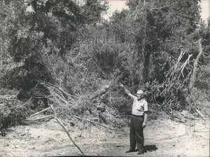 1962 Press Photo Walt Baumback, Clear Lake Banker, shows trees removed, Texas