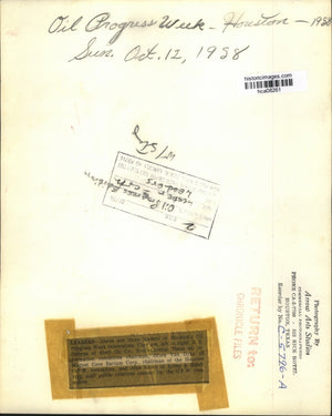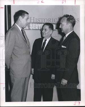 Oil Progress Week, Houston, 1958 Leaders-Above are three leaders in Houston's Progress Week celebration. They are, left to right, R.E.Dobyns of Shell Oil Co., South-Central Texas oil information committee chairman, Orien Van Dyke 61 Magnet Cove Barium Corp., chairman of the Houston O.P.W committee, and John Kemy of Kemp & Hazelrigg, staff public relations counsel for the O.P.W. committee.