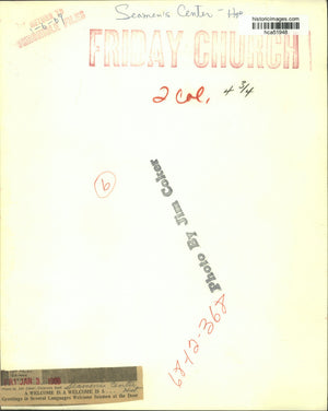 Greetings in several languages welcomes seamen at the door. Seamen's Center Houston