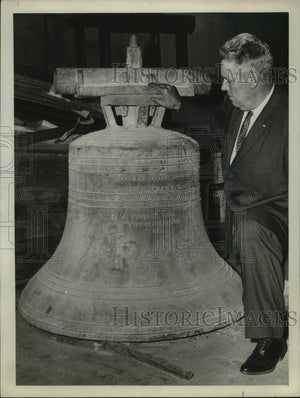 1960 Press Photo File Chief Claude M. Bullock examines bell - hca75438