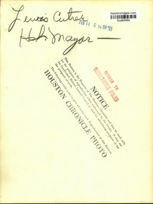 1959 Press Photo Mayor Lewis Cutrer Shakes Hands with Guest, Houston - hca84464
