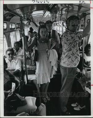 1977 Press Photo Passengers standing on a crowded bus in Houston. - hcb00327