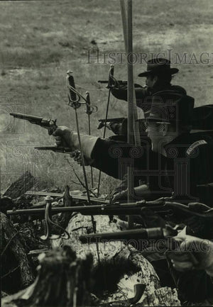1973 Press Photo U.S. Army Cavalry reenactment - "make a stand" against attack