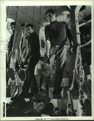 1972 Press Photo Actor holds a man down with his foot in movie scene - hcp13205