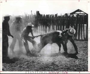 1976 Press Photo Cowboys Wresting a Cow - hcx01683