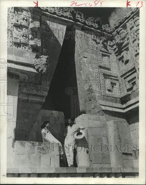 1965 Press Photo Maya youth & maiden visit glories of heritage at Uxmal, Mexico