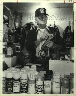 1984 Press Photo John Patterson Checks Shears at Houston Livestock Show & Rodeo