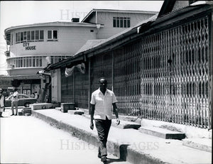 Press Photo Man Walks Past Closed Asian Shop - KSB27551