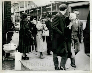 A police constable and three men accused of an £18,000 bank paid. 39-year-old Metropolitan Police-constable George Albert Askew was charged with three other men at Waltham Cross, Essex, yesterday of breaking into Chinford's National Provincial Bank and stealing cash and jewellery worth £18,103. The men and two women a mother and daughter were also accused of receiving part of the stolen money. All the accused were remanded for a week, the men in custody and the women on bail. Photo shows with their faces covered the two women in the case, 24-year-old Beryl Irving (front) is followed by her mother 57-year-old Mrs. Rose Irving (at back). Both were remanded for a week on bail of £100 each. The woman in the centre is unidentified.