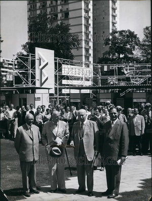 International Building Exhibition opened... On July 6th 1957 the International Building-Exhibition was opened by the president of the Federal Republic of Germany Theodor Heuss. Numerous guests of honour took part at this celebration. Photo shows During a circuit in the Hansa-section from l.t.r senator Dr. Mahler, Berlin's mayor Prof. Suhr. preisdent Heuss and building senator Schwedler.