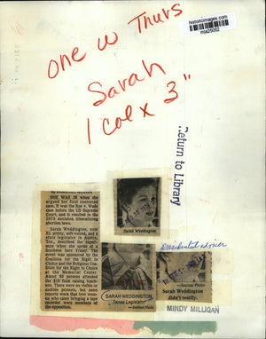She was 26 when she argued her first contested case. It was the Roe v. Wade case before the US Supreme Court, and it resulted in the 1973 decision liberalizing abortion laws. Sarah Weddington, now 32, pretty, soft voiced, and a state legislator in Austin, Texas, described the experience when she spoke at a luncheon here Friday. The event was sponsored by the Coaltion for the Right to Choice and the Religious Coalition for the Right to Choice at the Memorial Center. About 80 persons attended the $10 fundraising luncheon. There were no visible or audible protests, but some reports were that two women who came bringing a tape recorder were members of the opposition. She was a presidential advisor.