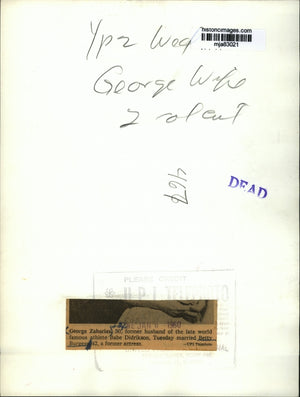 George Zaharias and wife. George Zaharias, 50, former husband of the late world famous athlete Babe Didrikson, Tuesday married Betty Burgess, 42, a former actress. Las Vegas, Nev.: George Zaharias, 50, former husband of the late world famous athlete Babe Didrikson who died last year of cancer, and Betty Burgess, 42, Los Angeles, former film actress, were married 1/5 at Desert Inn in Las Vegas where they are spending their honeymoon. Zaharias, a former wrestler now in the real estate business, and his wife have known each other for 21 years.