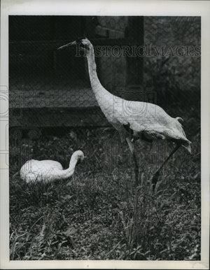 1957 Press Photo Whooping Cranes Crip & Jo at Audubon Park Zoo, New Orleans
