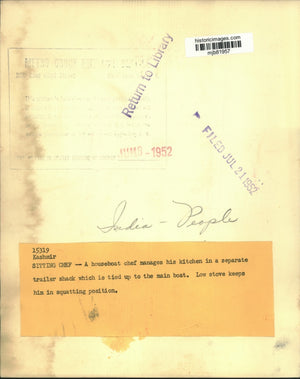 1952 Press Photo Houseboat chef in India manages his kitchen in a separate shack