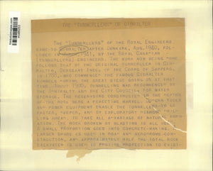 Guard by tunnel at Rock of Gibraltar. The "Tunnellers" of the Royal Engineers came to Gibraltar after Dunkirk, August 1940, followed in March 1941 by the Royal Canadian (Tunnellers) engineers. The work now being done follows that of the original tunneller in Gibraltar, Sergeant Ince, of the Corps of Sappers, in 1788, who commenced the famous Gibraltar tunnels during the great siege going on at that time. About 1900, tunnelling was recommenced by the Admiralty and the City Council for water storage. The reservoirs constructed in the depths of the rock were a peacetime marvel. Modern tools and power equipment enable the Tunnellers to go faster, deeper, and by exploratory diamond drilling ahead, to take all advantage of natural formation. The rock broken by blasting is all used. A small proportion goes into concrete-making. A larger share is used in road and aerodrome construction, and approximately half the total rock excavated is used to provide protection to exist...