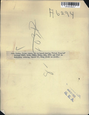 1926 Press Photo John Burke, Tenor in "Irish Program"
