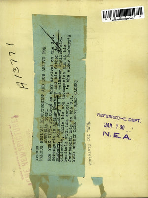 1930 Press Photo John Duxbury English Elocutuonist and Son arrived in New York