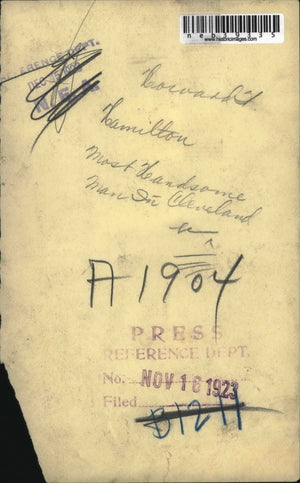 1923 Press Photo Mr Hamilton named Most Handsome man in Cleveland Ohio