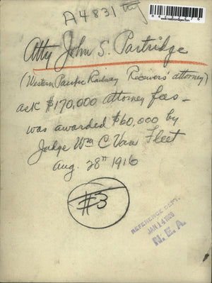1926 Press Photo Atty, John S.Partridge of Western Pacific Railway Recovers'.