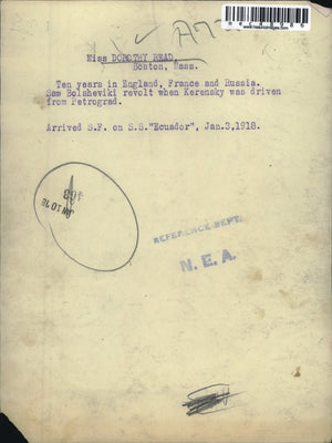 1918 Press Photo Miss Dorothy Read, Boston, Mass. on the SS Ecuador