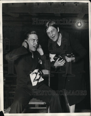 1929 Press Photo Edward Danfield being irritated with Peggy Claoer's voice.