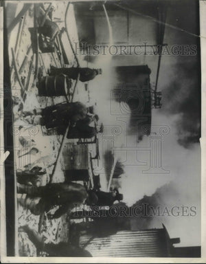 1930 Press Photo Oil explosion & fire at Beacon Oil co. in Everett, Mass