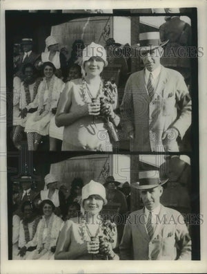 1930 Press Photo James Dole & Maryan Jenson at Wheeler Field awaiting derby