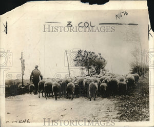 1918 Press Photo French sheep herder driving his flock home