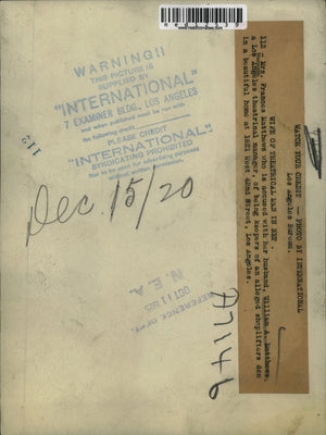 1925 Media Photo Frances Matthews, Wife of William A., LA Shoplifting Suspects