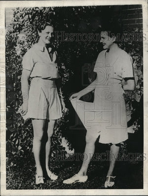 1931 Press Photo Elsie Mae Childers And Mary Lundeen Don Summer Shorts At School