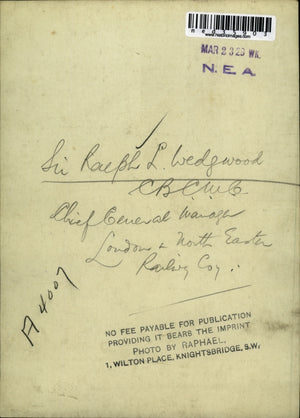 Sir Ralph Wedgwood, Chief General Manager at North Eastern Railway Co., London.