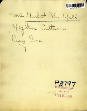 1927 Press Photo Mrs. Herbert B. Hall, Catherine Avery Society Registrar