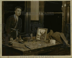 1931 Press Photo Dr Giocannai Glurato Italian Consul Shows Bomb Damage to Consul