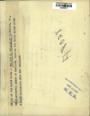 Judge William Coleman newly appointed Judge of Maryland leaves the White House after a short conference with the President.