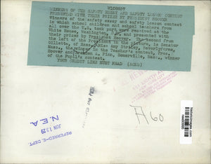1929 Press Photo Pres.Herbert Hoover presented prizes fro Safety Essay Contest