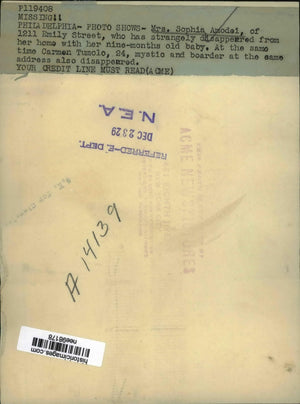 1929 Press Photo Mrs.Sophia Amodei disappeared form her home with her baby