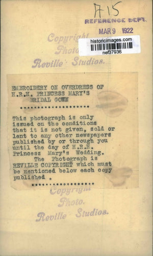 1922 Press Photo Embroidery on Princess Mary Bridal Gown overdress - nef37936