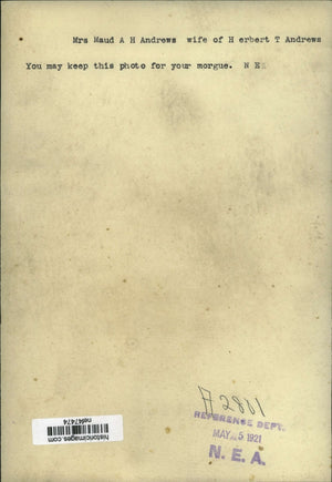 1921 Press Photo Mrs Maud AH Andrews Wife of Herbert T Andrews - nef47474