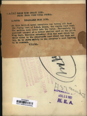 1922 Press Photo British Naval Aeroplane nose dive after taking off - nef68343