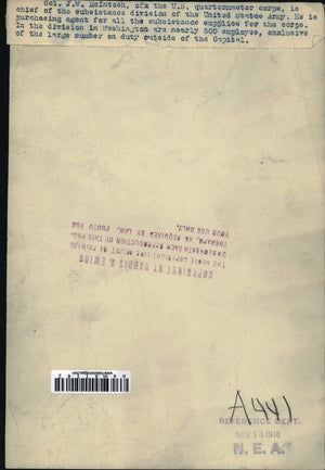 1918 Press Photo Col J.W. McIntosh Chief of Subsistence Division of U.S. Army