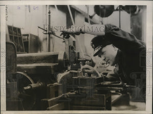 1939 Press Photo Officer works on a machine for British Navy at Vernon Center