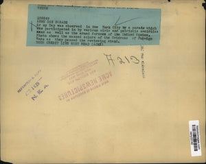 Army Day was observed in NYC by a parade which was participated in by various civic and patriotic societies as well as the armed forces of the U.S. Photo shows the massed colors of the Veterans of Foreign Wars as they passed the reviewing stand.