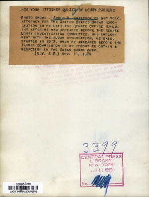 Edwin Shattuck of NY, Attorney for the U.S. Sugar Assoc as he left the Senate Office Building after he had appeared before the Senate Lobby Investigation Committee.