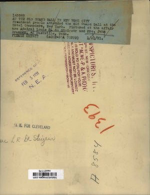 Admiral Louis R. de Steigeur, Mrs. John Branham at Old Guard Ball, Hotel Commodore, New York City