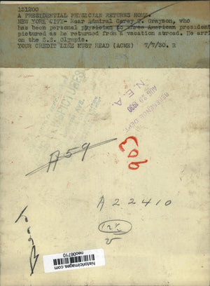 1930 Press Photo Rear admiral Carey T. Grayson in New York Aboard S.S. Olympic