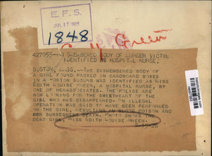 1926 Press Photo Edith Louise Green, Dismembered Murder Victim of Boston