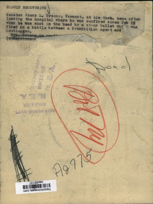 1924 Press Photo Senator Frank L. Greene at Home Recovering from Bullet Wound