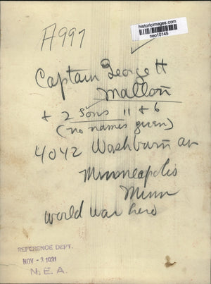 1931 Press Photo Captain George Mallom World War Hero of Minneapolis with & Sons