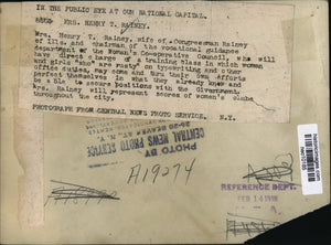 1918 Press Photo Mrs. Henry Rainey, Wife of Cong. Rainey of Il.,Helping Women