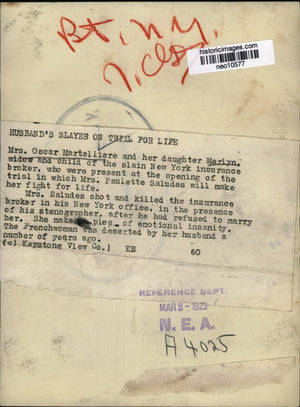 1923 Press Photo Mrs. Oscar Martelliere & Daughter Merlyn of Murdered Broker